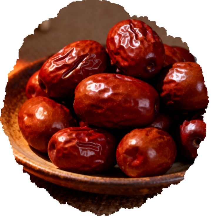 使药,选用山西稷山产的大枣,是 “稷山板枣” 的道地产区,所产大枣个大核小、肉厚皮薄,含糖量可达 70% 以上,维生素 C、环磷酸腺苷含量高,口感软糯,是 “中国十大名枣” 之一。