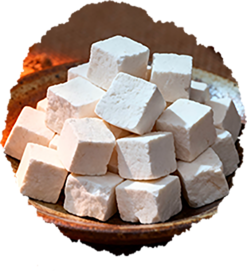 臣药,选用贵州凯里产的茯苓,质地坚实、断面洁白,茯苓聚糖、三萜类成分含量高,不易霉变,是药用茯苓的优选。