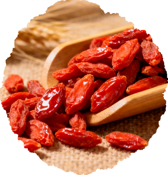 臣药,选用宁夏中宁产的枸杞,颗粒大、肉质厚、色泽鲜红,枸杞多糖、胡萝卜素含量高,口感甘甜,无苦涩味,是传统滋补枸杞的代表。