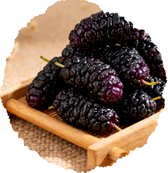 臣药,选用河北沧州产的桑葚,果实饱满、果汁丰富,花青素、维生素 C 含量高,成熟度均匀,口感清甜,兼具食用和食疗价值。