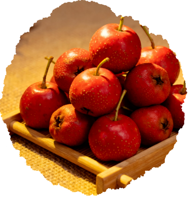 佐药,选用山西晋城产的山楂,果实饱满、色泽鲜红,总黄酮、山楂酸含量高,酸度适中,既适合调味也能发挥其助消化作用。